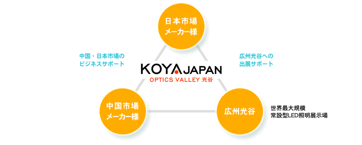 KOYA JAPAN が、中国・日本市場ビジネスのさまざまなご要望にトータルサポートいたします。